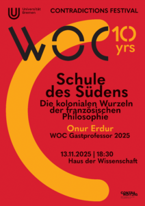 Onur Erdur forscht derzeit zu Fragen der globalen Ideengeschichte, mit Schwerpunkt auf Kolonialismus und Migration. 2024 erschien sein viel beachtetes Buch „Schule des Südens. Die kolonialen Wurzeln der französischen Theorie“, das auf mehreren Sachbuch-Bestenlisten stand, darunter auf der „Hotlist“ der 10 beliebtesten Bücher aus unabhängigen Verlagen. Übersetzungen ins Englische und Französische sind für 2026 geplant. Er wird im November 2025 als WOC Gastprofessor in Bremen sein.